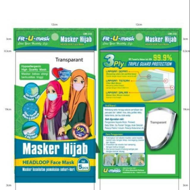 Masker Earloop Hijab Headloop Kids Hijab UM-233 Hijab BFE UM388 Kids Grade A. Cek juga tandingan Promo Fit U Mask Masker untuk Brand. Mudah saat dipakai dan dilepaskan di hijab.