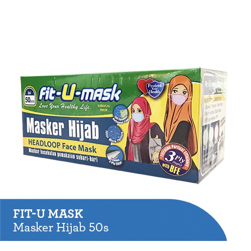 Masker Hijab Fit U Mask 3 Ply Isi 50 Pcs Original. FIT-U Masker Hijab Grade A Green 5s UM-233 Masker Kids Grade A 5s UM-338U-MASK Earloop Basic 5s UM-268. Review Masker Fit-U Hijab.